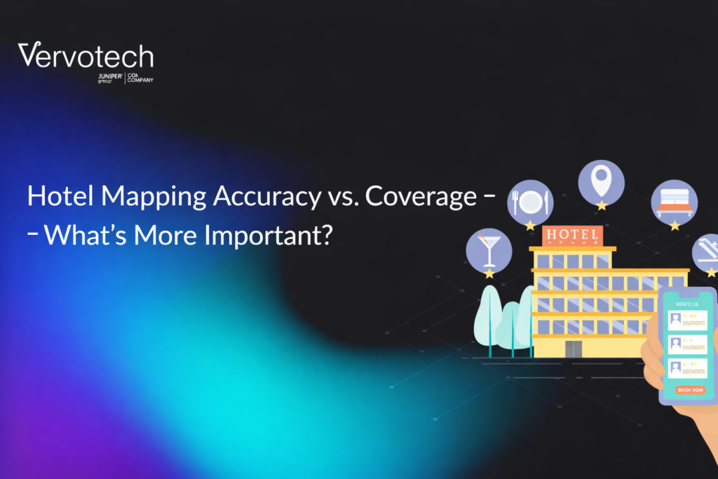 Vervotech Hotel Mapping combines AI and ML to achieve up to 98% coverage with 99.999% accuracy through a simple API integration.